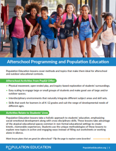 Population Education activities allow for real-world application of science concepts and can be used as a cross-cutting theme across grade levels and subject areas.